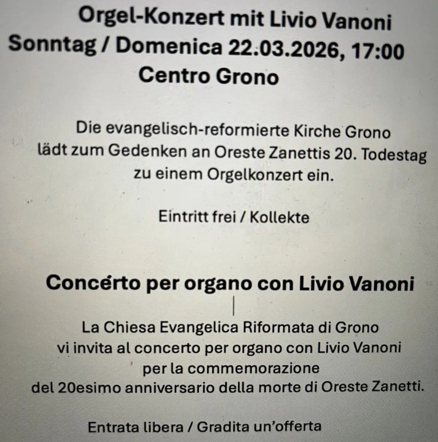 Chiesa Riformata Grono - Concerto per organo