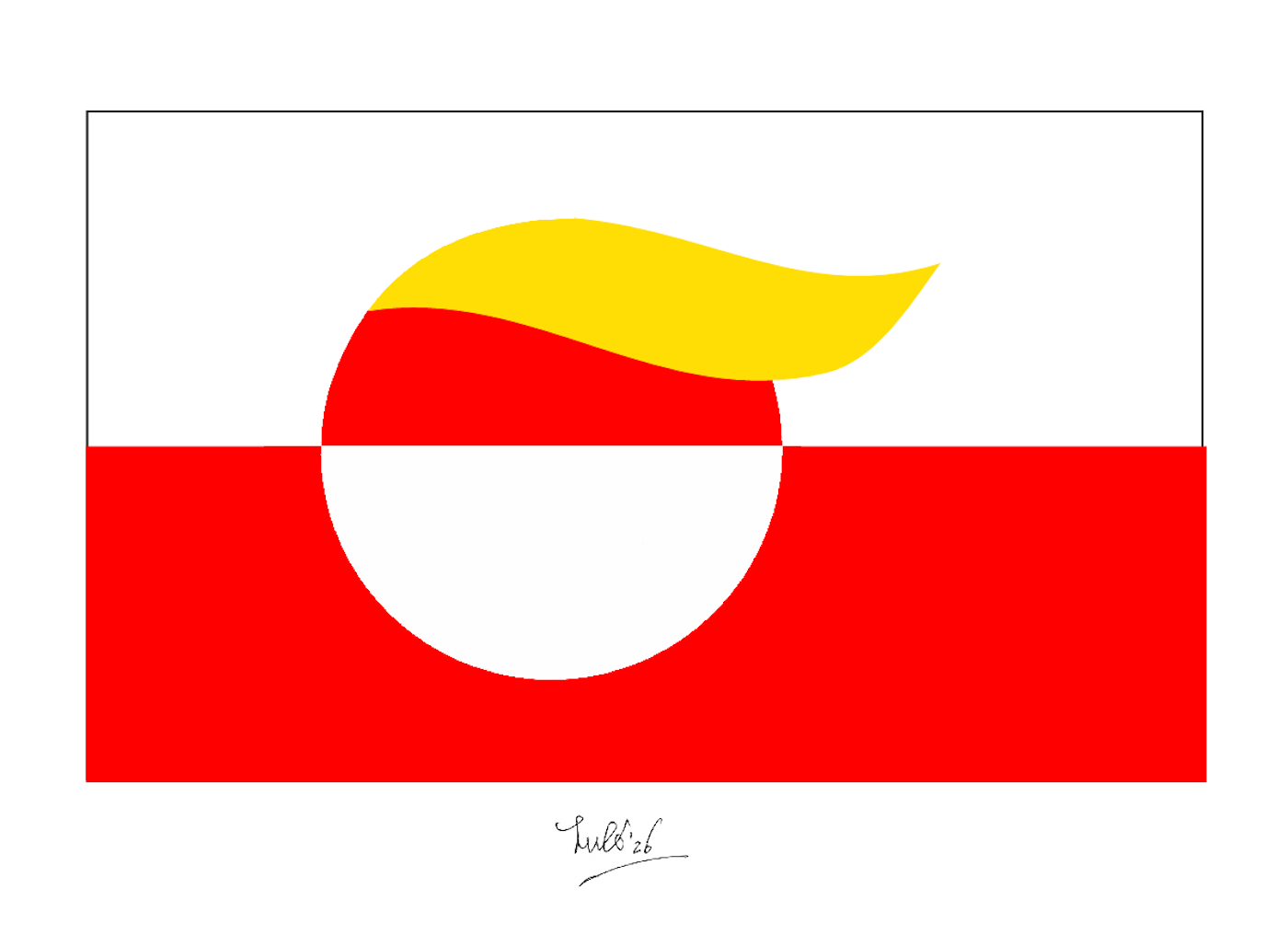 Bandiera con una parte superiore bianca e una curvatura gialla, seguita da un cerchio bianco su uno sfondo rosso. La parte inferiore è completamente rossa.
