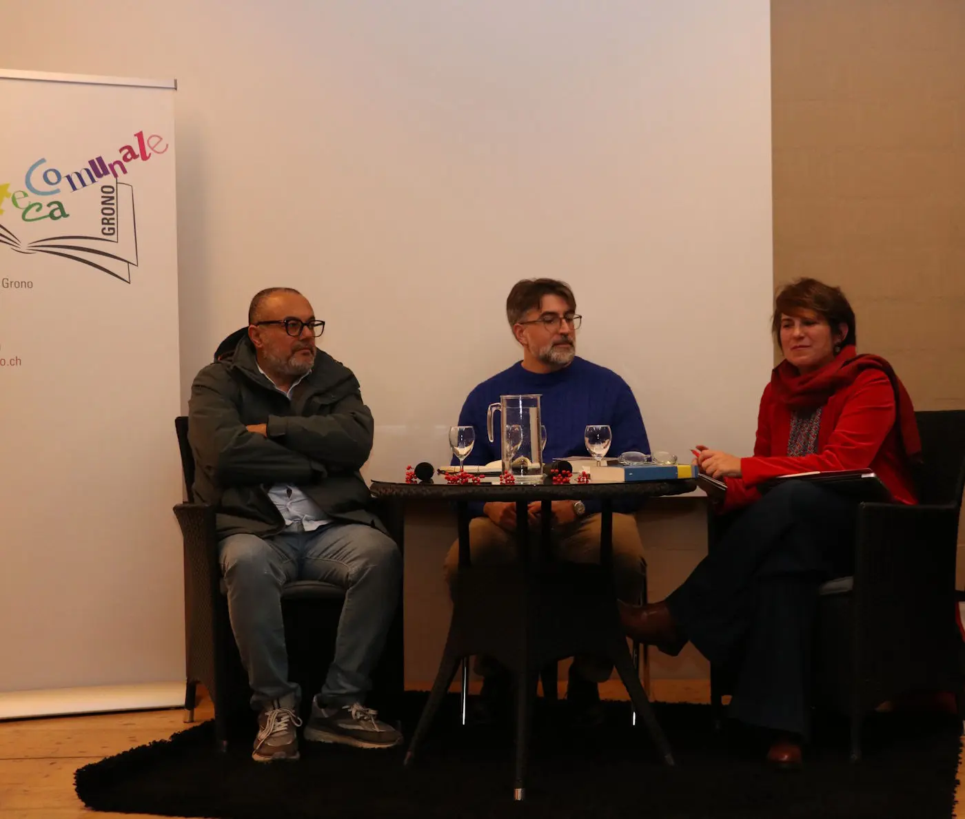 Ieri sera, presso l’Aula Magna delle scuole di Grono, si è tenuta la presentazione di La vita appesa, romanzo di Atef Abu Saif edito da Polidoro. L’evento è stato organizzato dalla Biblioteca Comunale in collaborazione con Biennale Calanca. La giornalista RSI di Rete Due, Natascha Fioretti, nel ruolo di moderatrice, ha dialogato con lo scrittore tramite interprete, il curatore del libro, Giacomo Longhi Alberti.