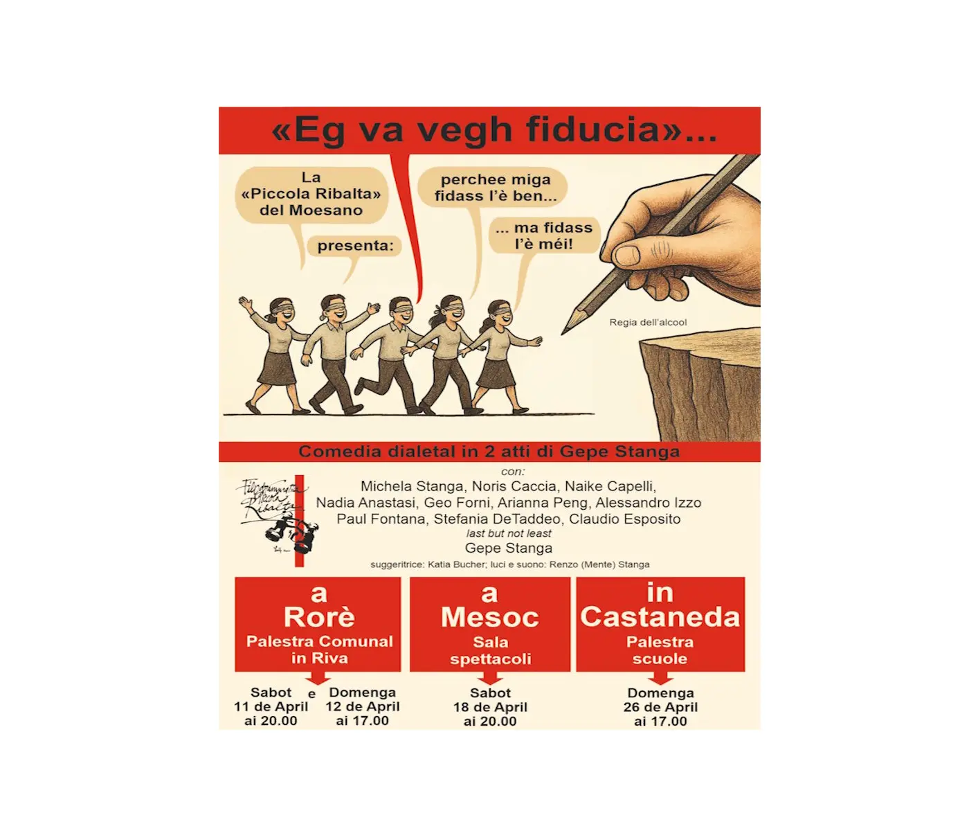 Il titolo è già tutto un programma, un gioco di parole che ribalta il celebre proverbio e introduce lo spettatore in un mondo dove la logica è l'ultima degli invitati. A firmare il copione è una vera leggenda del teatro locale: Gepe Stanga. Il veterano ultranovantenne, colonna portante della compagnia, torna a colpire con la sua penna sagace, dimostrando che l’ironia non ha età.